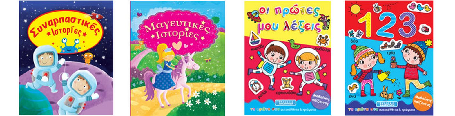 Μέσα από καθημερινές εικόνες, το παιδί μαθαίνει να ξεχωρίζει, να ζωγραφίζει, να συνθέτει και να δημιουργεί ! Δυο όμορφα και πρακτικά βιβλία με ΠΟΛΛΑ ΑΥΤΟΚΟΛΛΗΤΑ, τα οποία θα απασχολήσουν δημιουργικά, θα διασκεδάσουν τους μικρούς μας φίλους και θα τους οδηγήσουν στο χώρο της γνώσης!