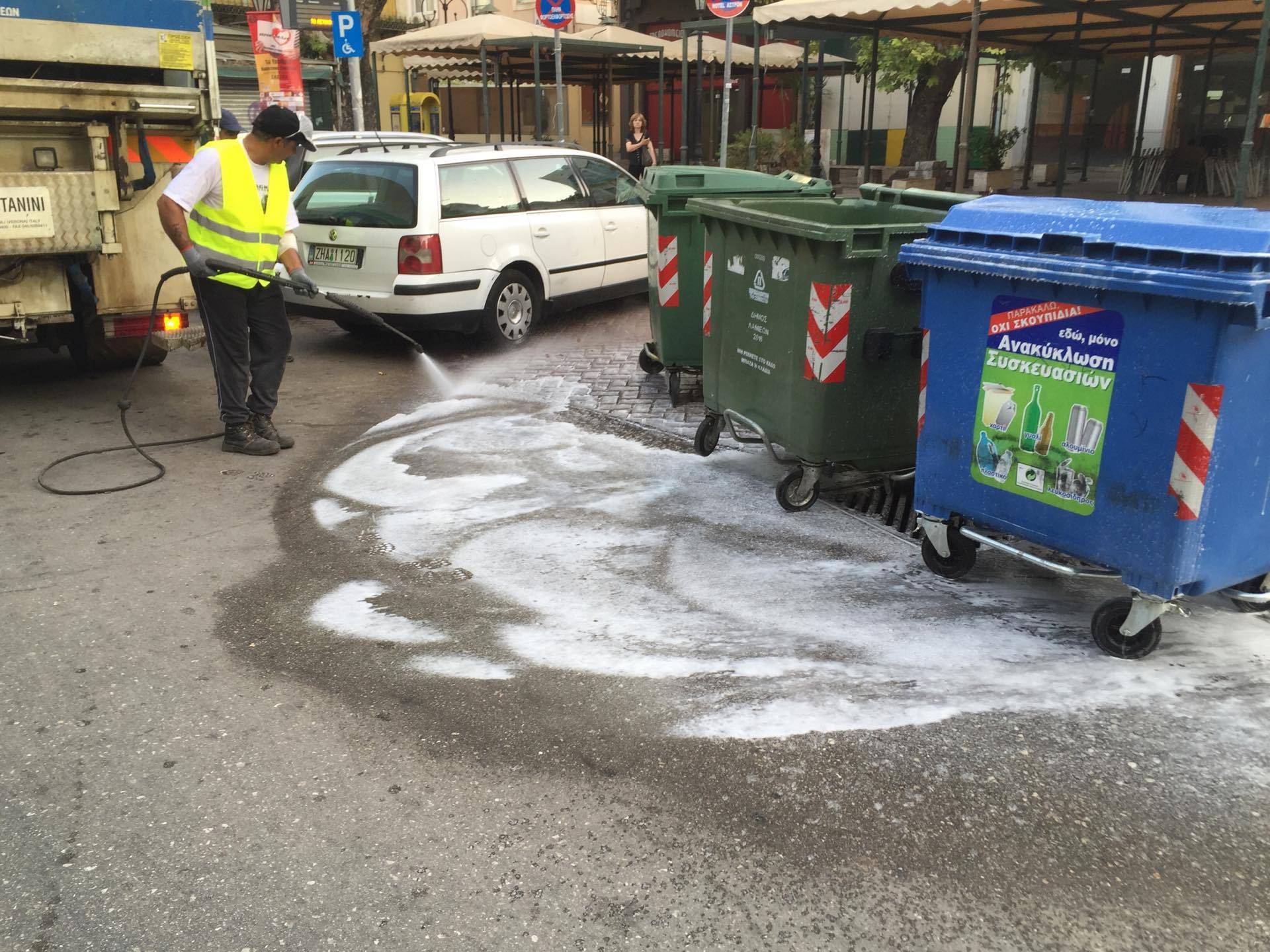 Παράλληλα ξεκίνησε ο καθαρισμός και η απολύμανση των κάδων.