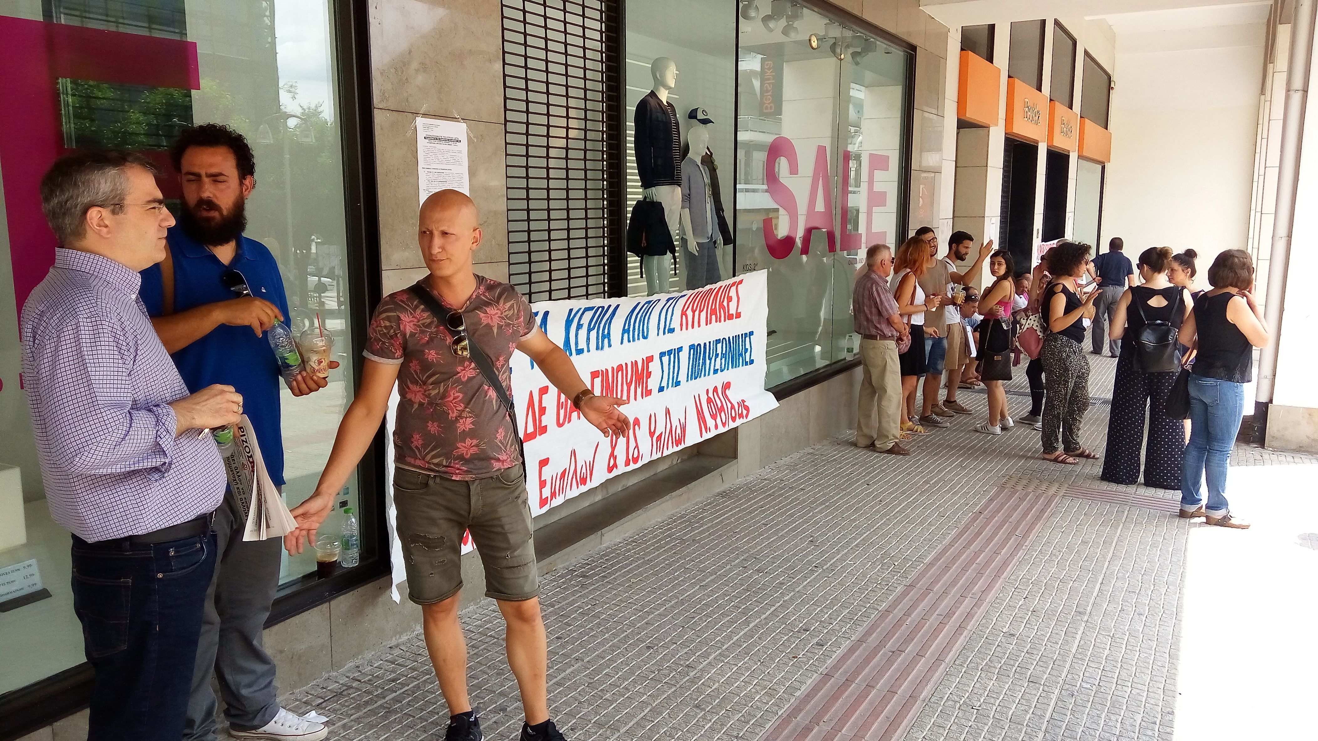 Δυναμική κινητοποίηση πραγματοποίησε το Σωματείο Εμποροϋπαλλήλων και Ιδιωτικών υπαλλήλων νομού Φθιώτιδας, με την συμπαράσταση του Εργατικού Κέντρου Λαμίας και την ομάδα γυναικών Λαμίας της ΟΓΕ, ενάντια στην κατάργηση της Κυριακής αργίας.