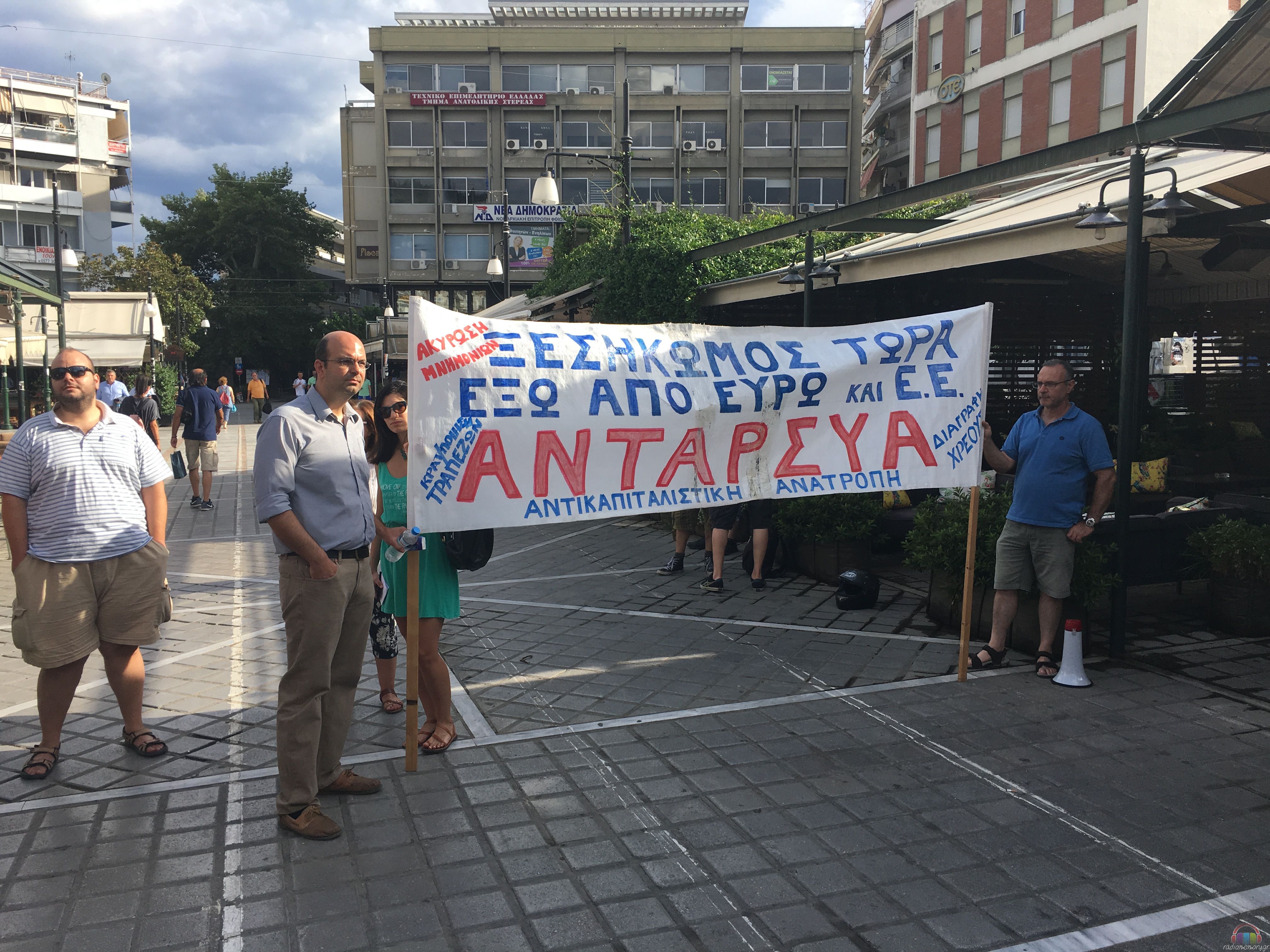 Την ίδια ώρα και λίγο νωρίτερα από την ομιλία του Πρωθυπουργού Αλέξη Τσίπρα στο δημοτικό θέατρο Λαμίας εργαζόμενοι , άνεργοι, αγρότες και πολίτες διαδήλωνα ενάντια στην κυβέρνηση και στους χειρισμούς της .